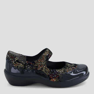 GUMMIBEAR W - BLACK ROYAL PRINT PATENT SUEDE MARY-JANE FLATS