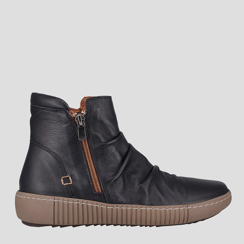 5250 - NAVY CRINKLE LEATHER ANKLE BOOTS