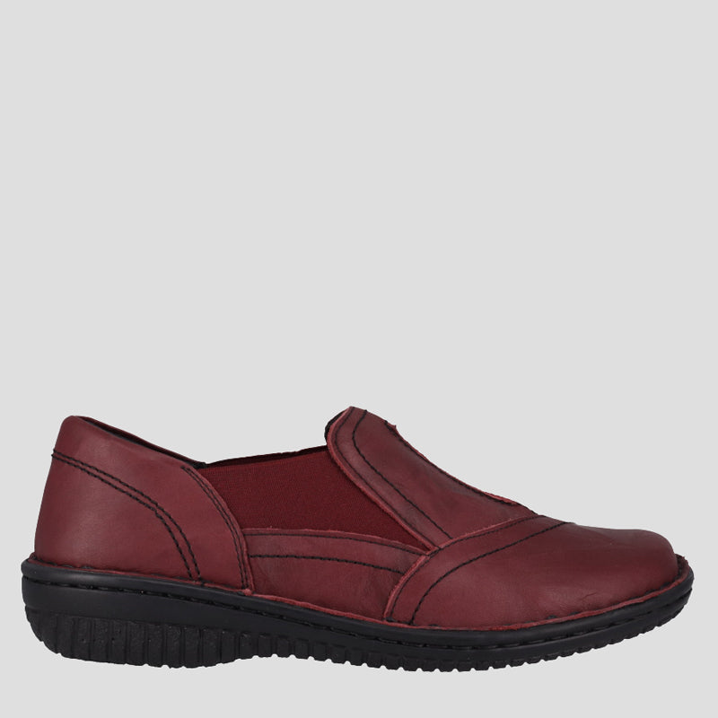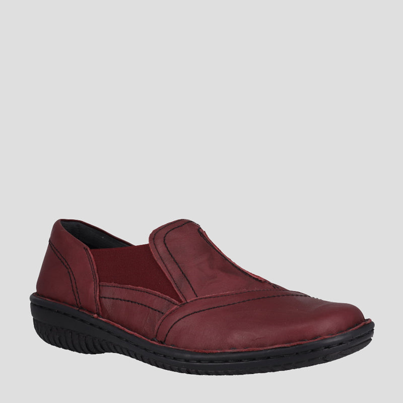 This beautiful hand stitched slip-on leather shoe features twin elastic gussets, padded collar and flexible soles ensuring all day comfort. The padded innersoles can be removed for orthotics meaning this style is perfect for all day work or play.