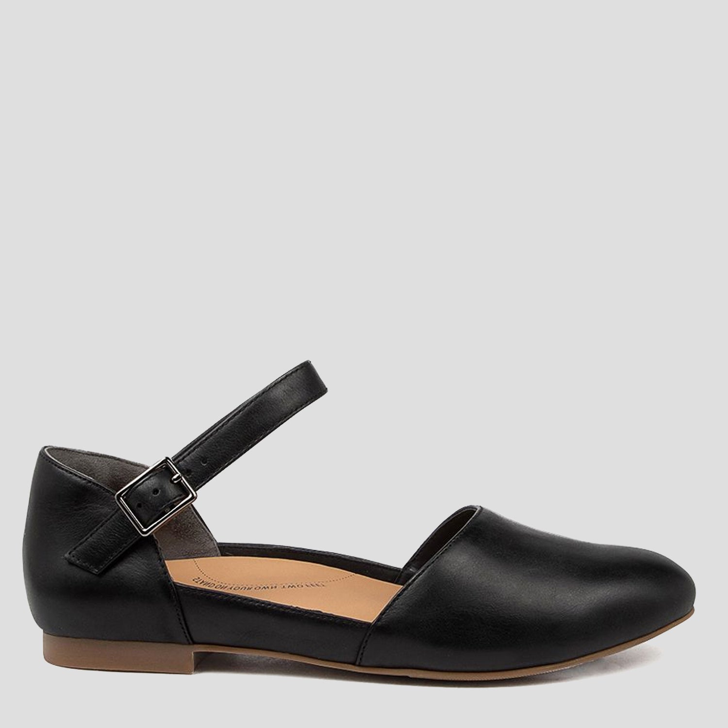 Flats with ankle strap with adjustable buckle. Perfect for work or leisure.