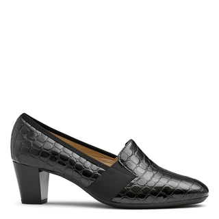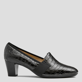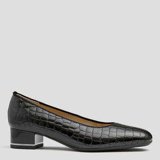 KOMIC W - BLACK ROYAL PRINT PATENT SUEDE PUMP HEELS