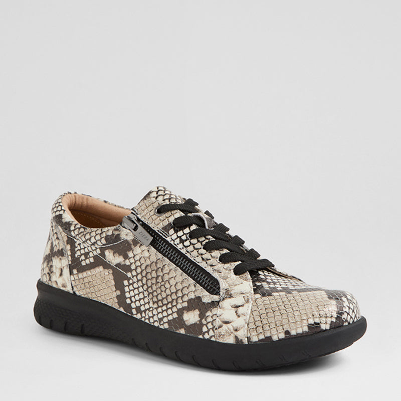 SOLAR XF - BLACK WHITE SNAKE PRINT LEATHER SNEAKERS