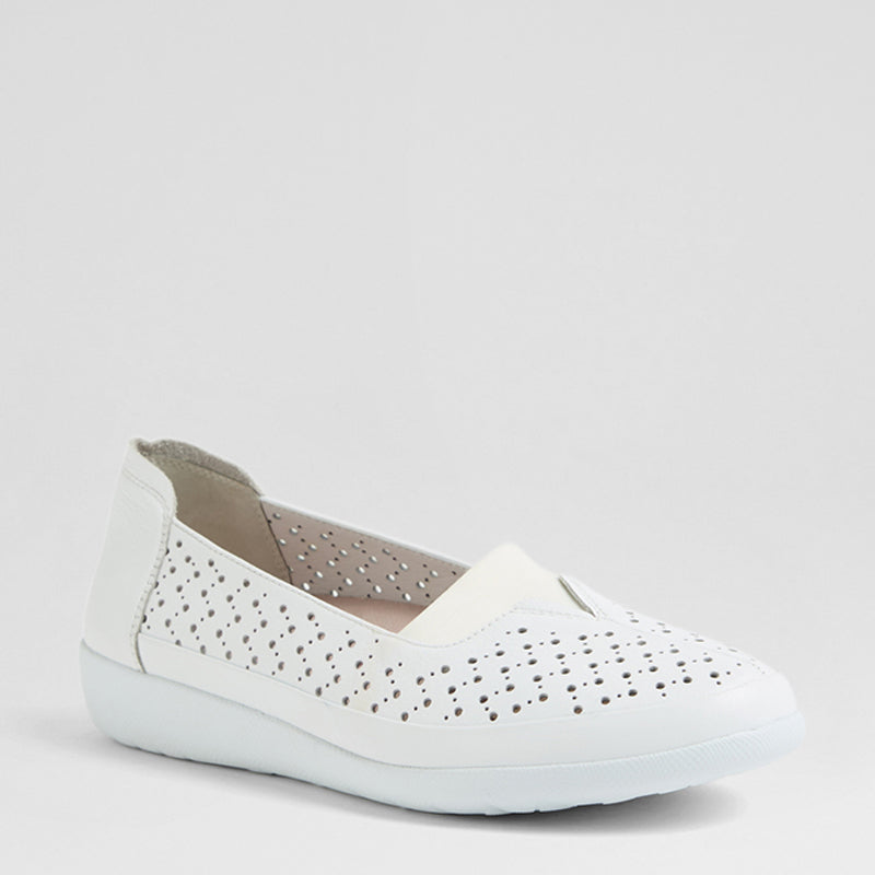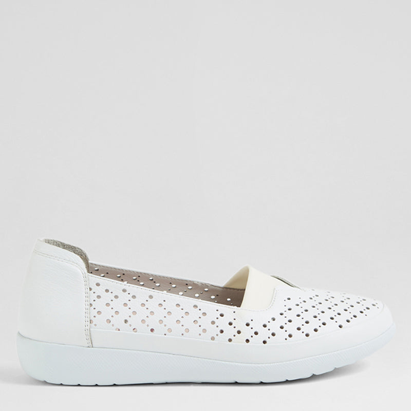 These UNKI XF flats feature a perforated leather upper for breathability and style. Designed with an extra wide fit and elasticised sopening, they provide superior comfort and accommodate wider feet effortlessly. The removable insole allows for custom orthotic support, making these flats a practical choice for all-day wear.
