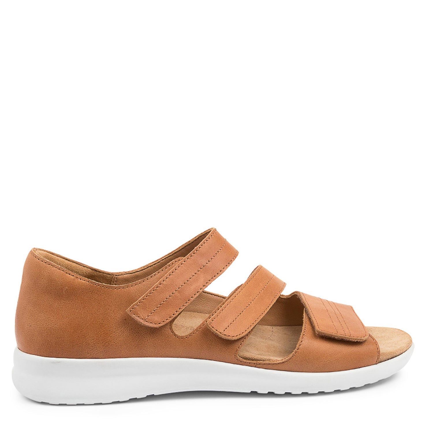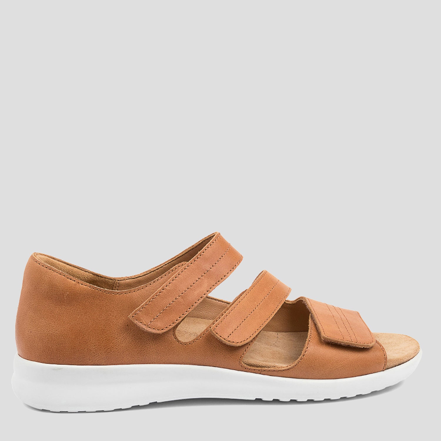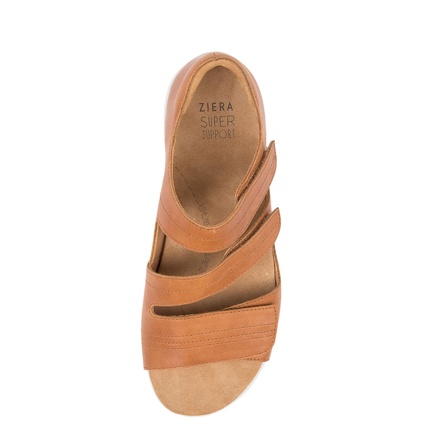 BARDOT by Ziera is all you need for everyday comfort. This sturdy leather sandal fastens with convenient riptape straps for an adjustable fit, fitted with a removable Super Support footbed that can be swapped for your own orthotics. This footbed features flexible, shock-absorbing PU with arch support, metatarsal cushioning and a contoured heel cup with a wider, deeper fit for excellent stability. This style features the brands XW fit, which offers more room over the front of the foot.