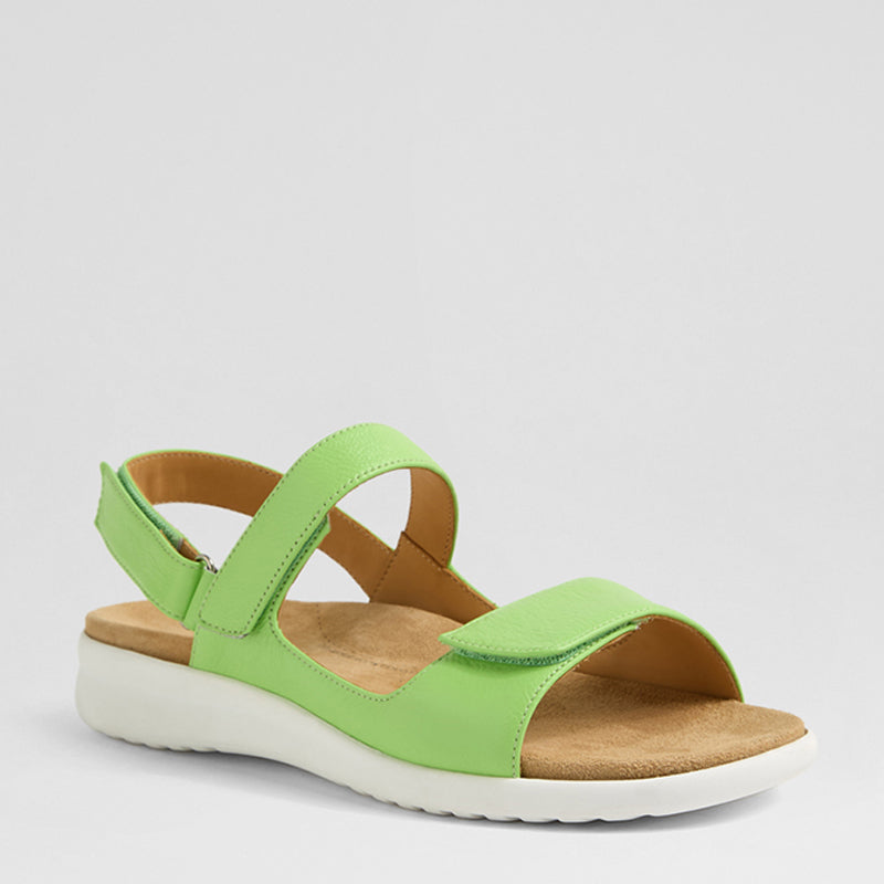 BENJI XW - LIGHT LIME LEATHER WHITE SOLE SANDALS