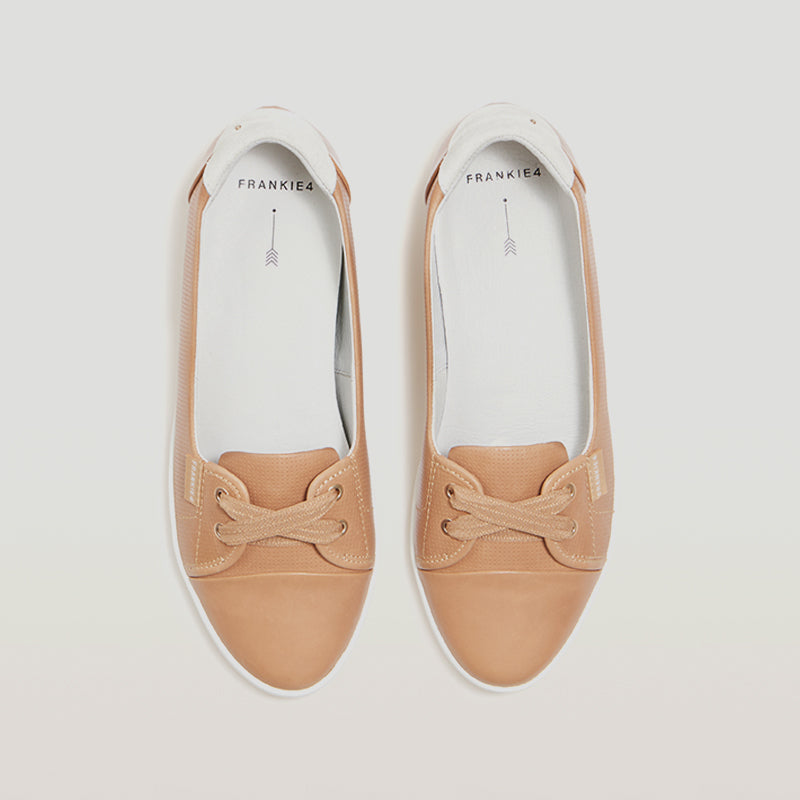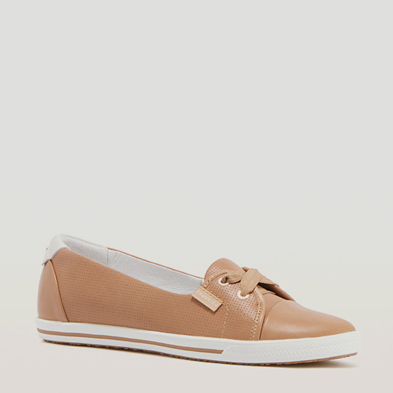 HANNAH III - CAMEL PUNCHED LEATHER FLATS