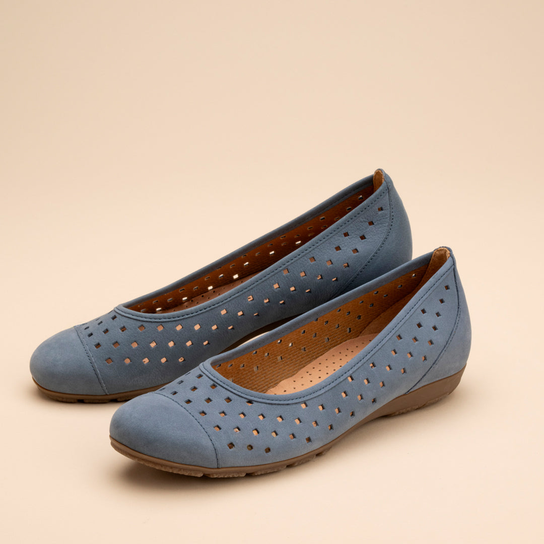 This slip-on ballerina style is great for any season and any occasion. With perforated suede leather making it breathable for those warmer days.