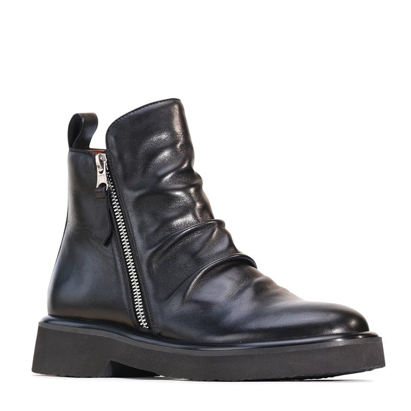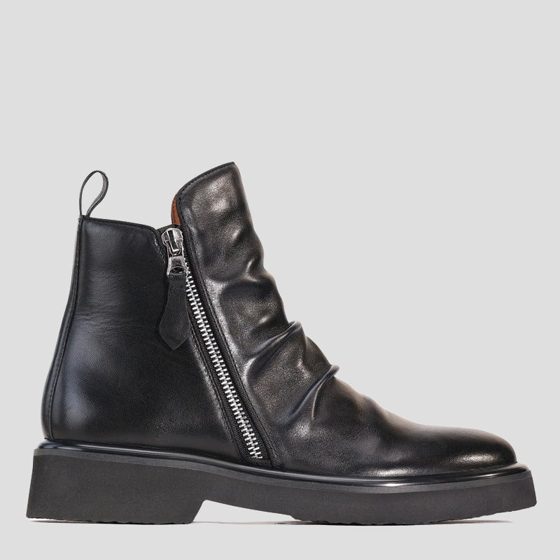 Discover the perfect balance of sophistication and comfort with the THEONA Low Heel Ankle Boots. Crafted from 100% Aniline Calf Napa leather, these boots offer a luxurious and durable feel. The almond-shaped toe and low block heel provide a flattering fit while ensuring ease of movement, making them ideal for all-day wear.