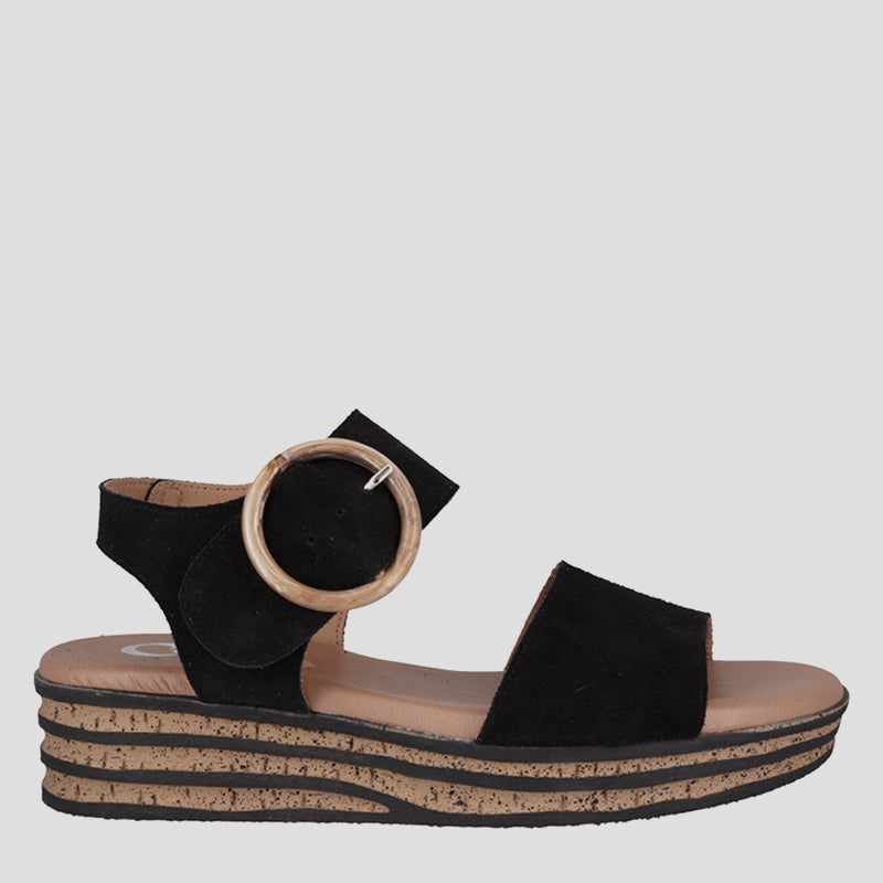 Elevate your summer style with VIVIAN by Cabello. A statement sandal that blends bold design with everyday comfort. Featuring a layered flatform sole and a large decorative buckle, this style adds instant flair while keeping steps cushioned and supported.